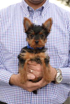 Then Simone said, well actually...."This little Yorkie is the one I originally liked." He said it was the Yorkie that had drawn him to that case in the first place but that the teddy bear was just so crazy excited it took away his attention. We stood there watching the little Yorkie Terrier. He was cute and calm and just seemed super sweet. We stood there talking about it for maybe 30 minutes. We finally asked if we could hold him. This puppy was in a special case with all the younger puppies. They were pretty strict on who was allowed to hold them. They wouldn't even bring him out of the case into the main store, and instead asked us if we would come to the back to see him. They took him out and instantly he snuggled right up into me. In that moment I just felt like he instantly loved me. He was different than the other puppies I had held that day. It was like he was meant to be mine. Simone took a turn holding him and he instantly cuddled up with him as well. We sat on the floor and played with him for a little bit, and that was it. We were sold, and said we wanted him.